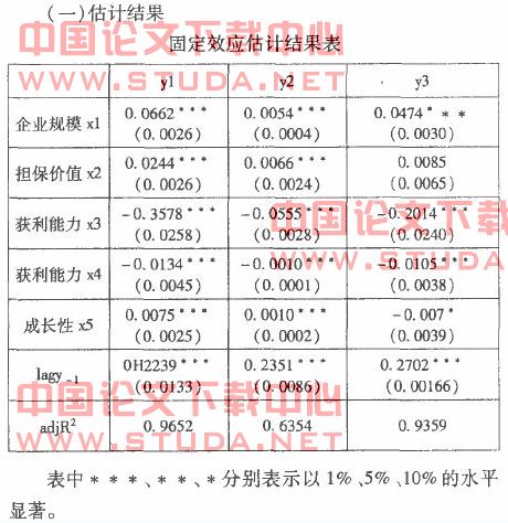 1、长期负债的公司规模系数为正且在1%的水平下显著,证明假设H1是正确的。结果表明我国大公司的非对称信息程度较低,破产风险小,银行显然更愿意对大公司进行长期贷款。另外,大公司的经营项目多,投资的项目更多,对长期资金的需求一也比小公司大。短期负债的公司规模系数也为正,这与假设H2恰恰相反,表明大公司在很大程度上依赖于短期负债。这可能是由于大公司的往来账款、应付工资、利润等项目较大,造成短期负债较多。从另一方面来看,自从1992年以来,商业银行的坏账增加,出于安全性的角度考虑,银行对长期贷款保持了比较谨慎的态度,使得获取长期借款的难度增大。此外,我国的债券市场还不够完善,大公司要想通过发行长期债券的形式筹资也难于实现。因此,当长期负债融资渠道受阻时,大公司只能通过短期借款以获得所需资金。总资产负债率与公司规模正相关,回归系数为0.0518,也就是说,规模为一千万元的公司比规模为五百万元的公司资产负债率要高3.6个百分点。可见公司规模的影响是很大的。